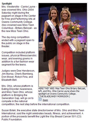 Mrs. Ohio International Pageant is all about Celebrating beauty and achievement as a married woman with recognition for her devotion to her family, professional life and community. Enjoy full theatre production at the Mrs Ohio Beauty Pageant Competition. Compete to represent Mrs Ohio at the televised Mrs. International Pageant Competition. Now showcasing along with Mrs Ohio Pageant Competition on stage is Miss Teen Ohio and Miss Ohio which is recognized as a married competion and for more than a beauty contest or beauty pageant in the usa or among american pageants today, including the pageant world and universe competitions. And as a married competition you too could be the next crowned Mrs Ohio. (Mrs Ohio® is a registered trademark owned by BowTech Productions) For more information contact [email protected] |