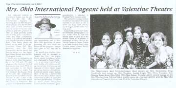 | Mrs. Ohio International Pageant is all about Celebrating beauty and achievement as a married woman with recognition for her devotion to her family, professional life and community. Enjoy full theatre production at the Mrs Ohio Beauty Pageant Competition. Compete to represent Mrs Ohio at the televised Mrs. International Pageant Competition. Now showcasing along with Mrs Ohio Pageant Competition on stage is Miss Teen Ohio and Miss Ohio which is recognized as a married competion and for more than a beauty contest or beauty pageant in the usa or among american pageants today, including the pageant world and universe competitions. And as a married competition you too could be the next crowned Mrs Ohio. (Mrs Ohio® is a registered trademark owned by BowTech Productions) For more information contact [email protected] |